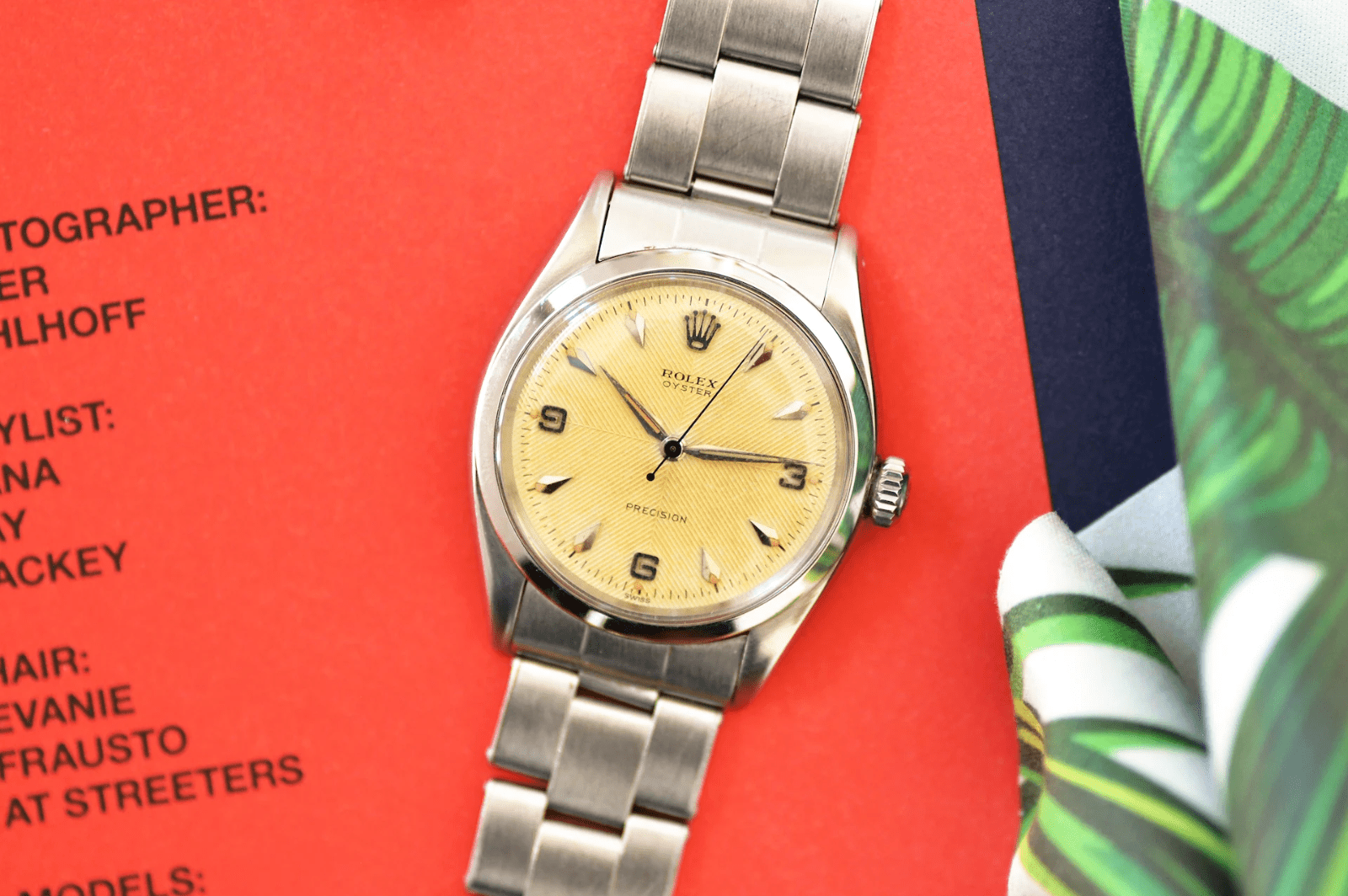 Rolex oyster precision ref.6422 3・6・9 dial yr1957 $ 3,718 + $68 for shipping.. . If you require help please call +1 646 400 6632.
